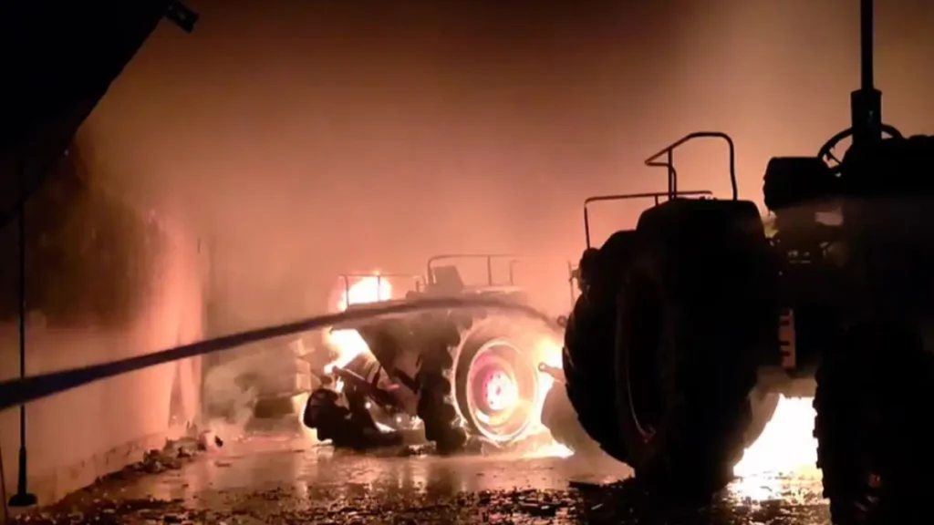 ट्रैक्टर शोरूम में भीषण आग : कई ट्रैक्टर हुए जलकर खाक, करोड़ों के नुकसान की आशंका