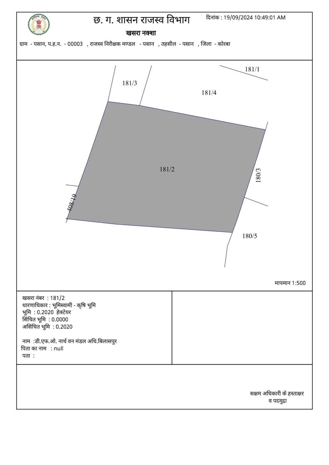 खसरा नंबर 181/2, रकबा 0.2020 हेक्टेयर ज़मीन।