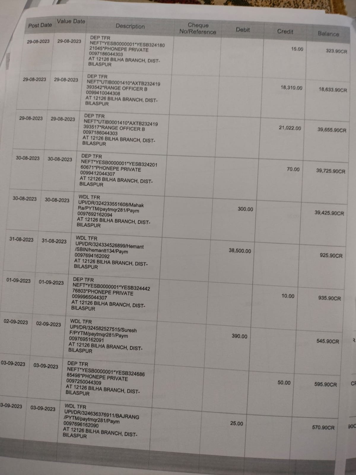 • 29/08/2023 को दीपक दुबे के खाते में दो अलग-अलग भुगतान (₹18,310 और ₹21,022) किए गए।