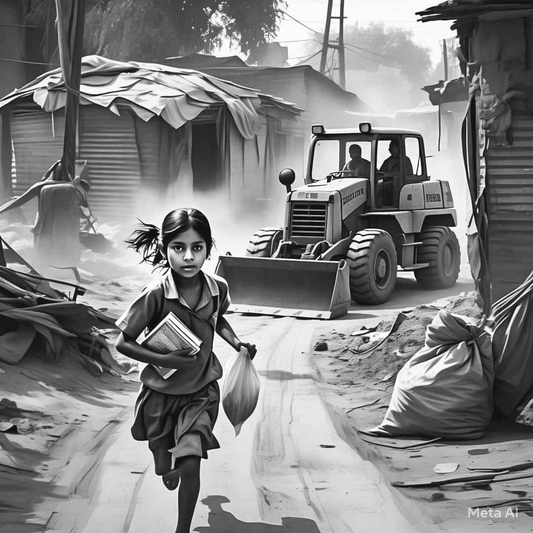 बुलडोज़र के साए में बचपन: विकास की आंधी में उजड़ते सपने
