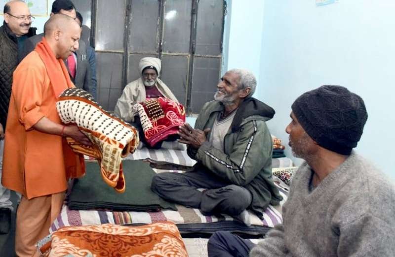कड़ाके की सर्दी में लोगों का हाल जानने रात में निकले सीएम योगी, रैन बसेरा पहुंचे